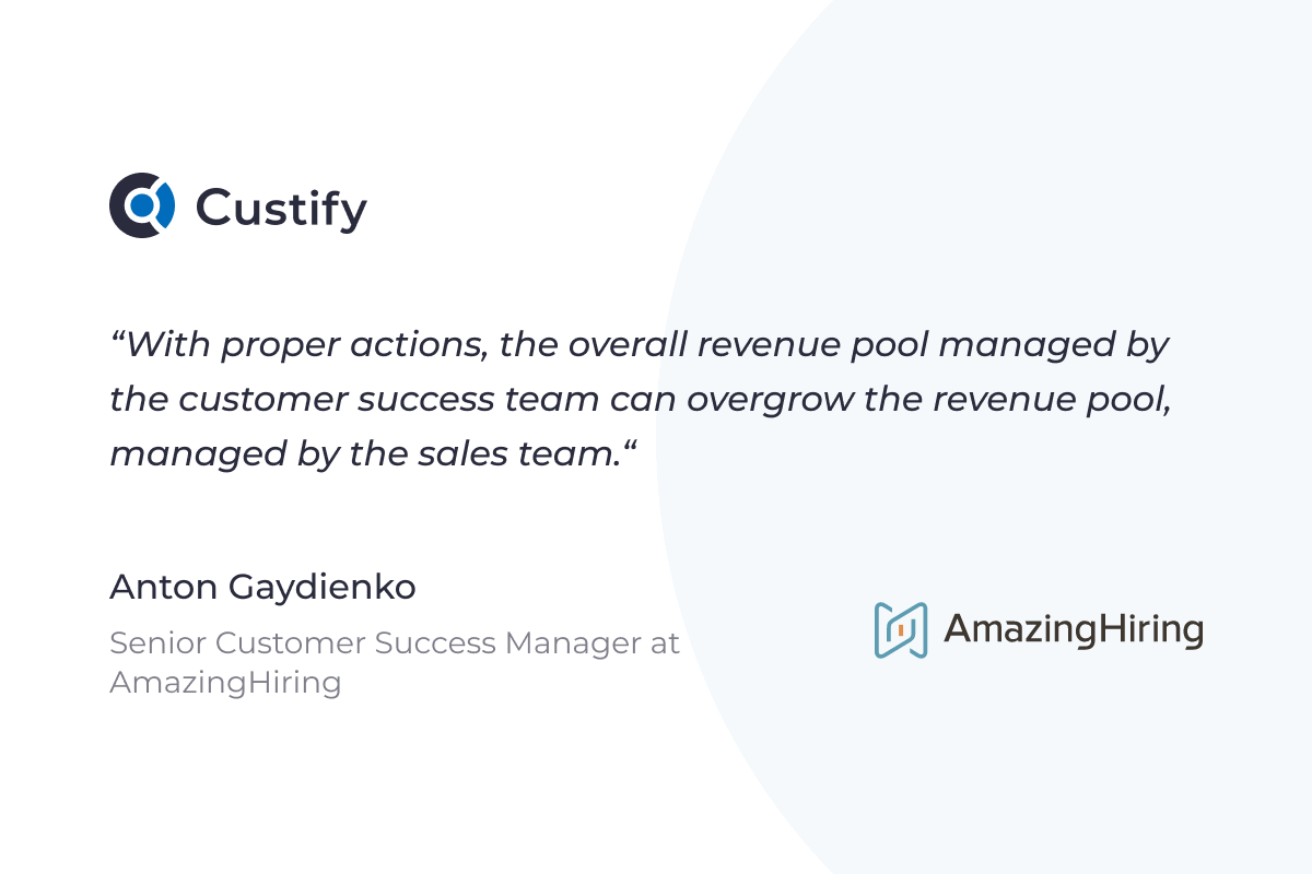 “With proper actions, the overall revenue pool managed by the customer success team can overgrow the revenue pool, managed by the sales team. This puts lots of responsibilities on CSMs shoulders, but also gives them lots of opportunities”, – Anton Gaydienko, Senior Customer Success Manager at AmazingHiring.